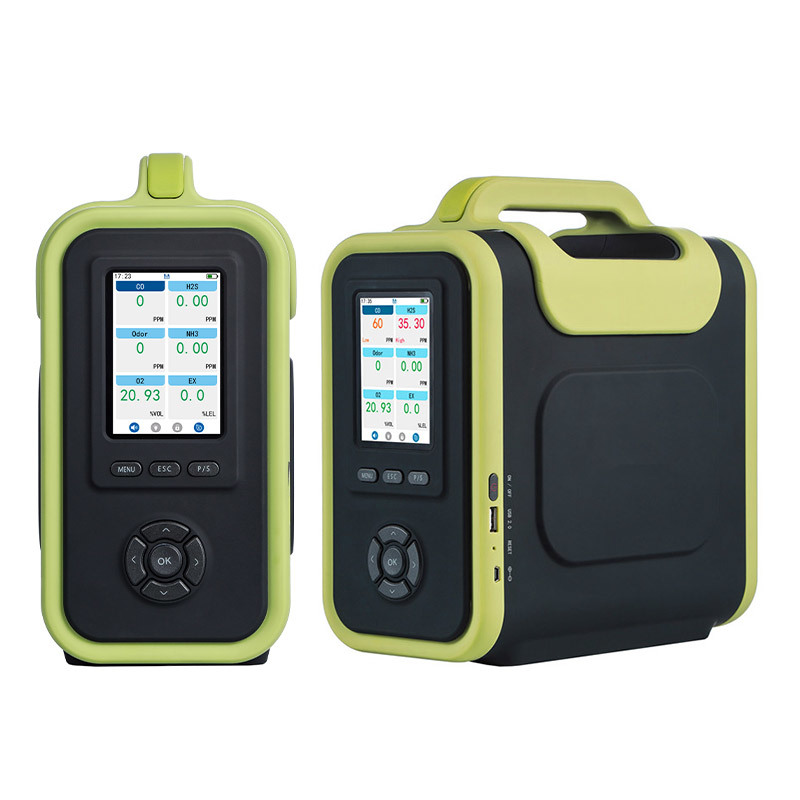 Elektrokimia (CO, SO₂, NOX), Inframerah (CO₂), ionisasi foto PID (VOC) |